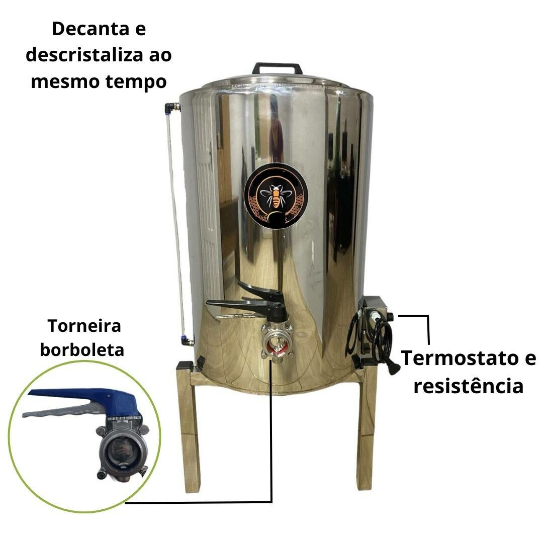 Função 2 em 1: Decanta e descristaliza o mel simultaneamente, otimizando tempo e processos no manuseio de grandes volumes de mel.