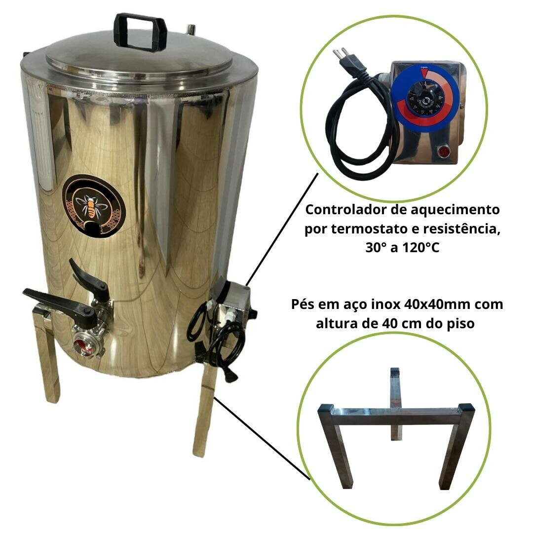 Resistência Potente: Com 3000W, aquece rapidamente e mantém o mel na temperatura ideal, ajustável com o termostato de 30°C a 120°C.