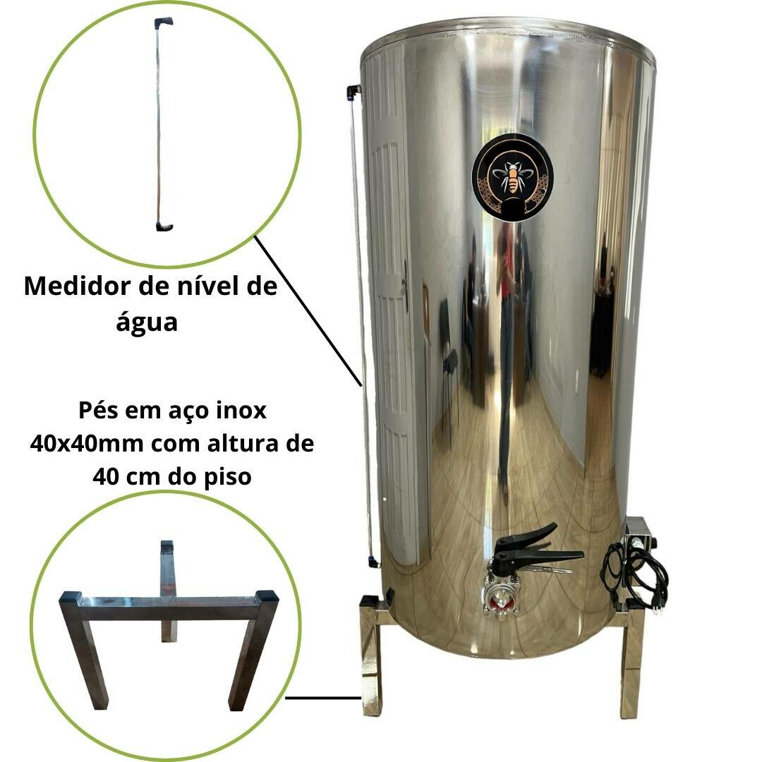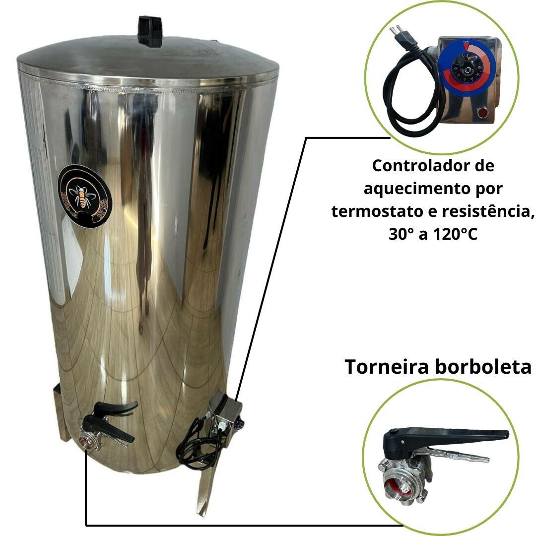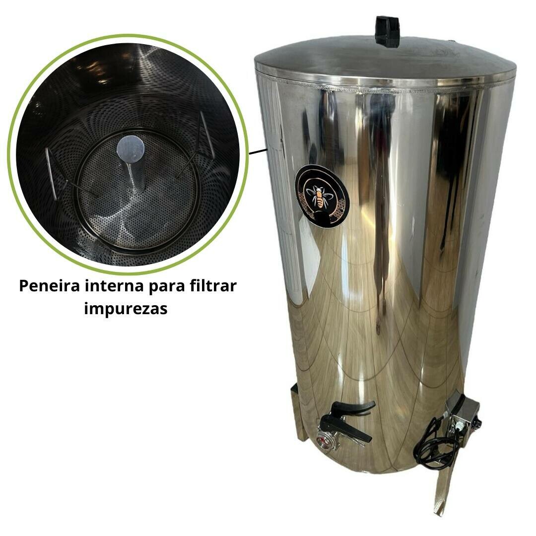 Função 2 em 1: Decanta e descristaliza mel ao mesmo tempo, otimizando processos para grandes volumes.